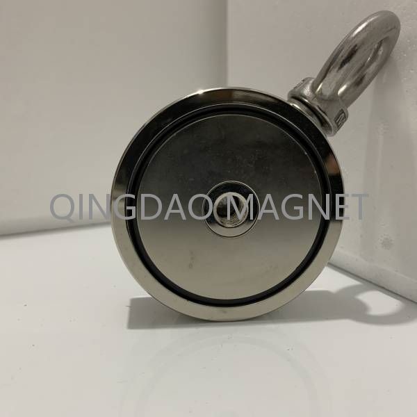 -Fishing magnet is a magnetic component composed of a ferromagnetic stainless steel shell with a eyelet hook and a sintered Neodymium(NdFeB) magnetic material. This magntic assmebly is commonly used sintered Neodymium magnets by N series with a maximum working temperature of 80°C. The price of this series of magnets is relatively cheap compared to magnets with high coercivity. In other words, the cost is more economical, and magnets with high remanence and high magnetic flux density can be selected according to the magnetic force or magnetic strength requirements; the maximum suction force can exceed 3000kgs;